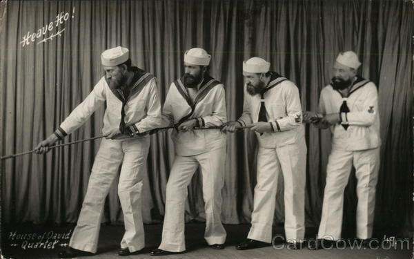 Front: Heave Ho House of David Quartet 173 FA 49. Back: HOUSE OF DAVID PARK BENTON HARBOR, MICH., U. S. A. P. O. BOX 477-SEND FOR LITERATURE EK