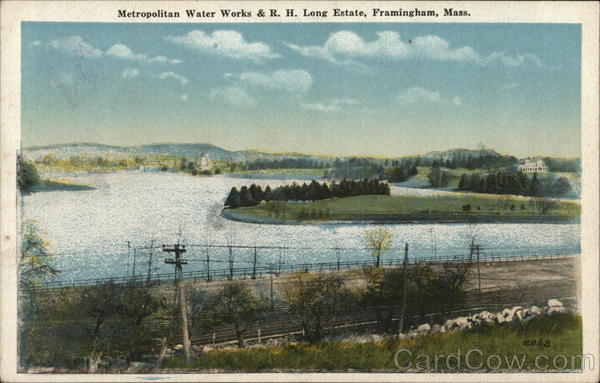 Front: Metropolitan Water Works & R. H. Long Estate, Framingham, Mass. wanat 8068 Back: Pub by The New England News Company, Boston, Mass. BOSTON MUZY Jost PHICS 7.757