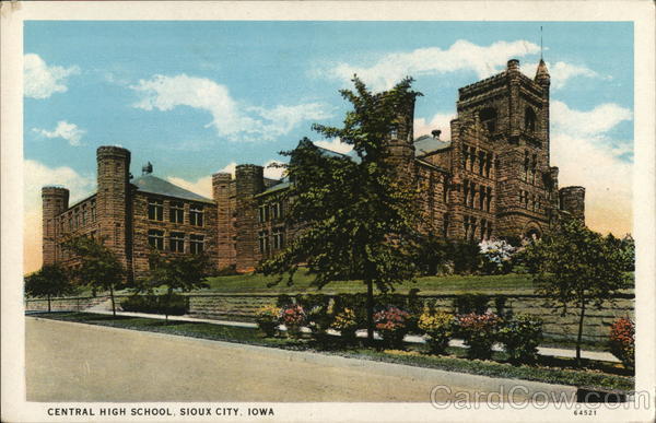 Front: Hi CENTRAL HIGH SCHOOL, SIOUX CITY, IOWA Sanamint 11 WH 64521 Back: 1930 вт Oliver Urpe C. T. AMERICAN ART COLORED TE HERE