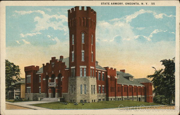 Front: CALITIC 10 010 STATE ARMORY, ONEONTA, N. Y. 55 11 Back: PUBLISHED BY CHAS. W. HUGHES, MECHANICVILLE, N. Y. STAR JALITY YOX C.T. AMERICAN ART A-96360 2- 18 CHICASS AND ISLAND POSSESSIONS, CUBA, CANADA AND MEXICO FOR FOREIGN