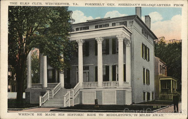 THE ELKS CLUB, WINCHESTER, VA. FORMERLY GEN. SHERIDAN'S HEADQUARTERS FROM