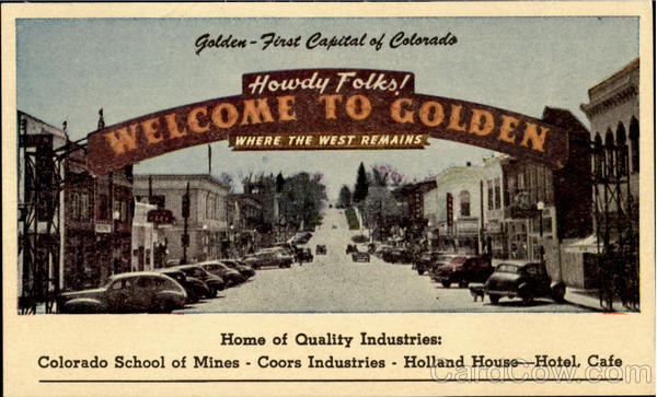 Front: Golden -First Capital of Colorado Howdy Folks! WELCOME TO GOLDEN WHERE THE WEST REMAINS Home of Quality Industries: Colorado School of Mines - Coors Industries Holland House-Hotel, Cafe %3D Back: SILVER STATE PRINTERS GOLDEN, COLORADO