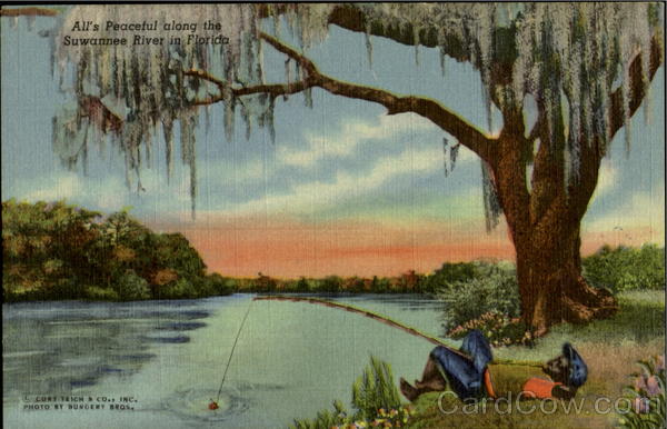 Front: All's Peaceful along the Suwannee River in Florida CCURT TEICH & CO. INC. PHOTO BY BURGERY BROS. Back: 217 F-TROPICAL FLORIDA SERIES 6B H1019