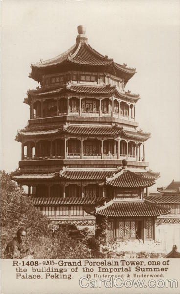 *** 1000 HI 17 YYYA XxX (G)D)x 65x61 TOK<*****0 R-1408-4205-Grand Porcelain Tower, one of the buildings of the Imperial Summer Palace, Peking. Underwood & Underwood.