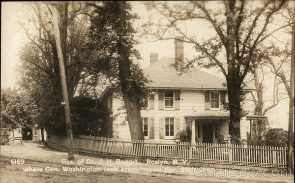 Front: 080 Res. of Dr. J. H. Bogart, Roslyn, N. Y where Gen. Washington took breakfast on Apr. 24th. 1790 6159 Back: This is A Genuine Photograph Made by The Garraway Company, Rutherford, N.J. 0.
