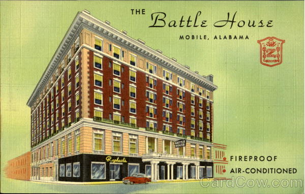 Front: Battle HousE MOBILE, ALABAMA BATTLE HOYSE C OBIL BATTLE HOUSE Raphasla FIREPROOF AIR-CONDITIONED Back: THE BATTLE HOUSE MOBILE, ALA. One of America's Fine Hotels OC-H1110