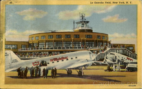 Front: 50 La Guardia Field, New York, N. Y. 『田田国 目田,国,困 国用明 NC 6063 US.MAIL AMHIQ AIR EXPRESS Mainliner AIR C 1B-H2481 Back: ALFRED MAINZER, 118 EAST 28TH ST., NEW YORK CITY