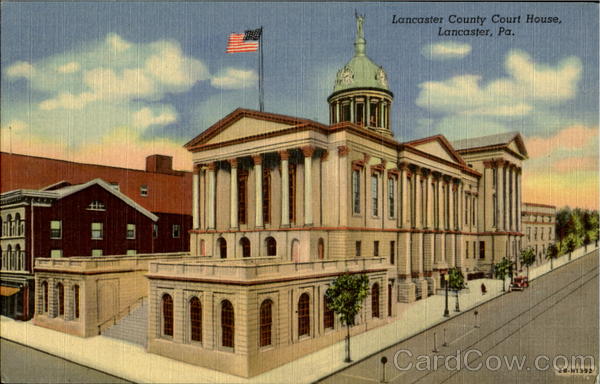 Front: Lancaster County Court House, Lancaster, Pa. 28-H1392 Back: DISTRIBUTED BY I. STEINFELDT, LANCASTER, PA.