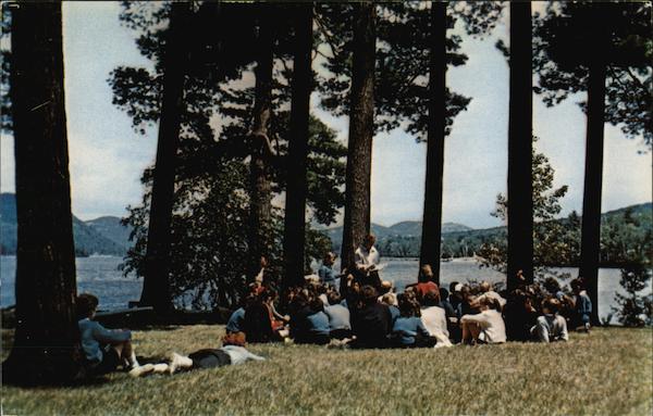 POINT O'PINES CAMP FOR GIRLS IN THE ADIRONDACKS BRANT LAKE NEW YORK Pub. by Dean Color Service, Glens Falis, N. Y. 21412-B Genuine Natural Color Made by DEXTER PRESS, Inc., West Nyack, N. Y. HERE