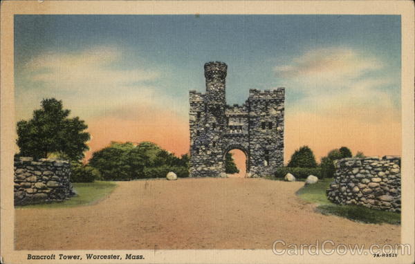 Front: Bancroft Tower, Worcester, Mass. 7A-H3521 Back: “C.T. ART-COLORTONE" REG.U.S. PAT. OFF. MADE ONLY BY CURT TEICH & Co., INC., CHICAGO PERKINS & BUTLER, INC., WORCESTER, MASS.