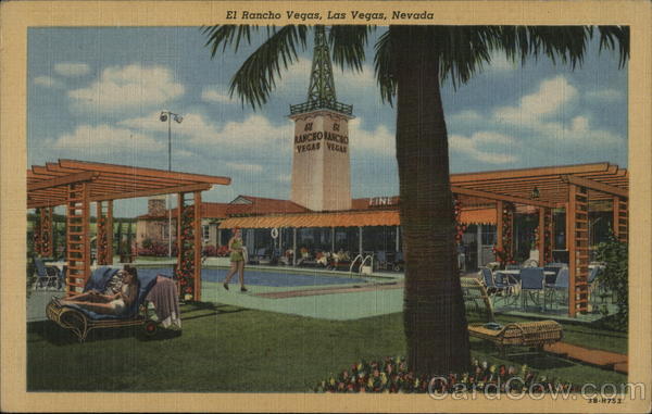 Front: El Rancho Vegas, Las Vegas, Nevada RANCHO RANCHO YEGAS VEGAS FINE 3B-H753 Back: DESERT SOUVENIR SUPPLY, BOULDER CITY, NEVADA 25 "C.T.ART-COLORTONE REG. U.S. PAT. OFF. 00.4 0081 25