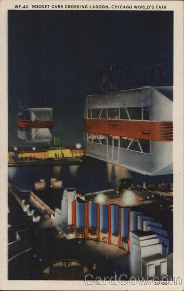 WF.42 ROCKET CARS CROSSING LAGOON, CHICAGO WORLD'S FAIR