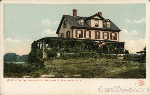 Front: 60 880 6031. CELIA THAXTER'S COTTAGE. APPLEDORE. ISLES OF SHOALS. N. H. COPYRIGHT 1901, BY DETROIT PHOTOGRAPHIC CO. Back: 2.00 AND CANADA. FOREIGN. TWO CENTS