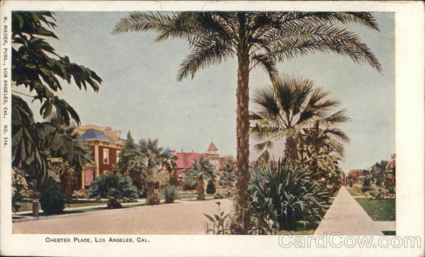 Front: M. RIEDER, PUBL., LOS ANGELES, CAL. NO. 114. CHESTER PLACE, LOS ANGELES, CAL. Back: Stille Post Gard TWO CENTS