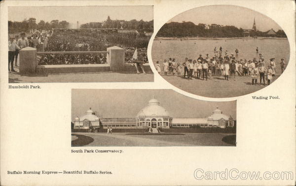 Front: Humboldt Park. 01-0 South Park Conservatory. Buffalo Morning Express- Beautiful Buffalo Series. | A MA MY DEA Wading Pool. Back: POST CARD.