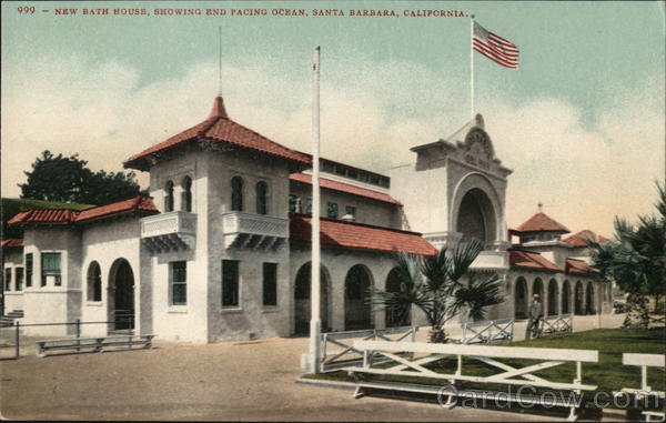 Front: 999 - NEW BATH HOUSE, SHOWING END FACING OCEAN, SANTA BARBARA, CALIFORNIA.. X Back: EDWARD H. MITCHELL, PUBLISHER, SAN FRANCISCO. 1- TH