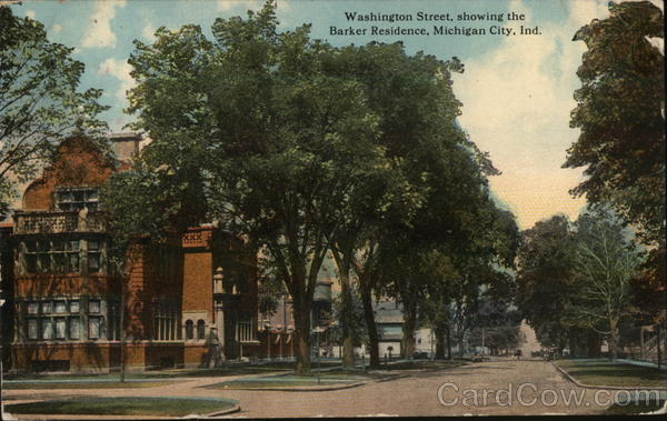 Front: *** ****** 11 Washington Street, showing the Barker Residence, Michigan City, Ind. Back: ime ED наш MICHIGAN harm te JUL 22 11-304 19 3 CITY but here A-10916 ROST D 4314 Miss 7. Bernier 28/2 Mildreda chies น
