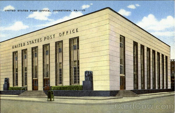 Front: UNITED STATES POST OFFICE, JOHNSTOWN, PA.-J7 UNITED STATES POST OFFICE Back: 28746 Published by Helsel & Murphy Wholesale Co., Johnstown, Pa. A "Natural Color Card" made by E. C. Kropp Co., Milwaukee, Wis.-LHL