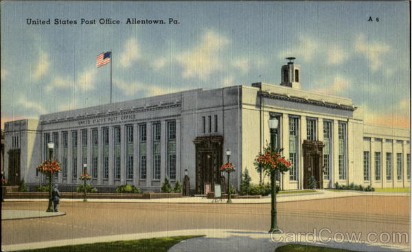 Front: United States Post Office. Allentown. Pa. A 6 UNHED STATES POST OFFICE Back: MADE IN U, S. A PUB. BY R. RAMSAY MEBANE, WILKES-BARRE. PA. 66076