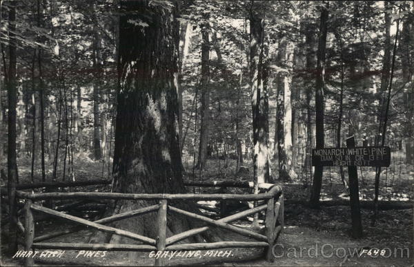 Front: HART HTCH PINES GRAYLING MICH MONARCH (WHITE) PINE DIAM. 50 IN CIR. 13 FT. HEIGHT 150 FT. F648 Back: ALL RIGHTS RESERVED THE L. L. COOK CO MILWAUKEE
