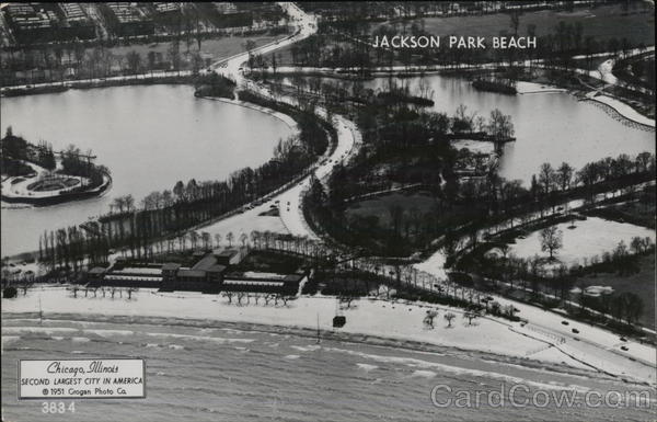 Front: Chicago, Illinois SECOND LARGEST CITY IN AMERICA 1951 Grogan Photo Co 3834 JACKSON PARK BEACH Back: GENUINE PHOTOGRAPH GROGANIZED DANVILLE. ILL. (MADE IN U.S.A.) 50 GROGANPHOTO- Danville, III.
