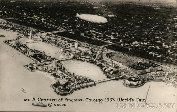 Front: TEL Finstwerel 102 A Century of Progress - Chicago 1933 World's Fair CASCO 6 Back: OFFICIAL SOUVENIR WRITE MESSAGE HERE TRADE MARK CENUINE ARENA PHOTO HERE