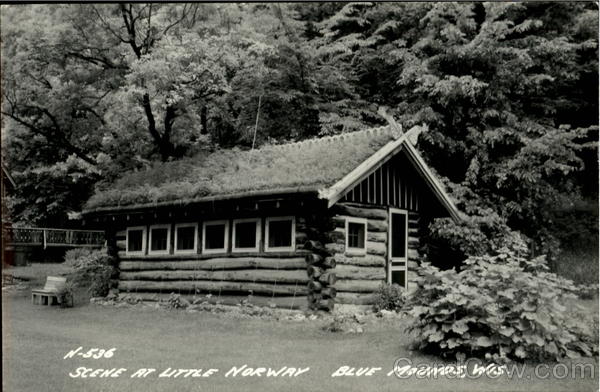 Front: N-536 SCENE AT LITTLE NORWAY BLUE MOUNDS, WIS. Back: EK ALL RIGHTS RESERVED-THE L. L. COCK CO, MILWAUKEE 650