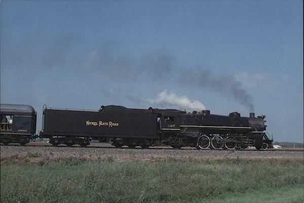 17, 1988. Nickel Plate Mikado 587 is seen traveling northbound through Sedalia, Ind. on
