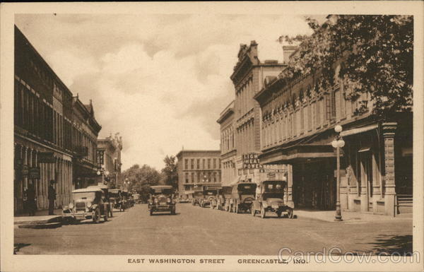 Front: CANDY LIGH THEAT POWER AN AMLT BARBER SHOP JOKS BOOK STORF EAST WASHINGTON STREET GREENCASTLE, IND. Back: PUBLISHED BY HAMILTON'S BOOK STORE, GREENCASTLE, IND.