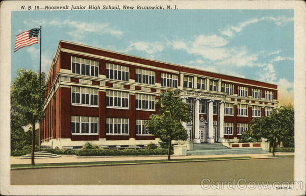 Front: N. B. 16-Roosevelt Junior High School, New Brunswick, N. J. OROOSEVELT JUNIOR HIGH SCHOOLO 5A6 16-N Back: LYNN H. BOYER, JR., WILDWOOD, N. J. *C. T. AMERICAN ART, REG. U. S. PAT. OFF.