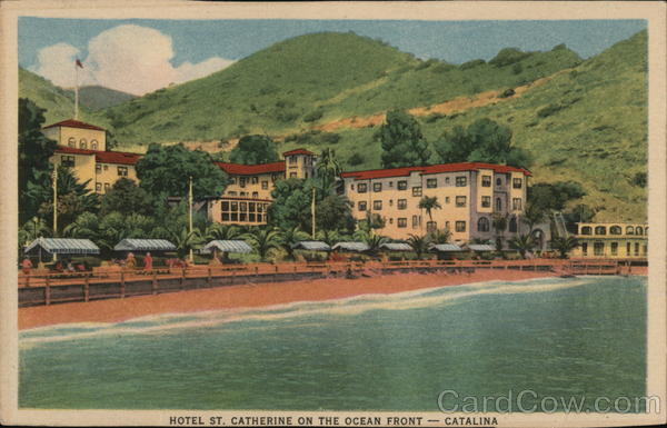 Front: HOTEL ST. CATHERINE ON THE OCEAN FRONT- - CATALINA Back: Catalina Califora GOST CARD CATA "In All The World No Trip Like This"