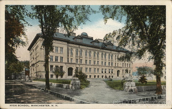 Front: HIGH SCHOOL, MANCHESTER, N. H. LI IF 11 ES Back: PUBLISHED BY JOHN B. VARICK CO., MANCHESTER, N. H. MADE IN USA ME RICAN A-25356 CHICAGO THIS SPACE FOR ADDRESS ONLY.