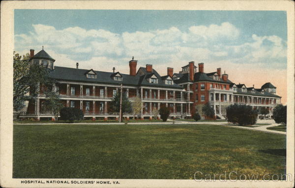 Front: HOSPITAL, NATIONAL SOLDIERS' HOME, VA. n Back: PUBLISHED BY LOUIS KAUFMANN & SONS, BALTIMORE, MD. SIND 2144 "5°`0)" PUBLISHERS OF LOCAL VIEWS BALTIMORE SONS C.T. AMERICAN A-39138 THIS SPACE FOR ADDRESS ONLY.