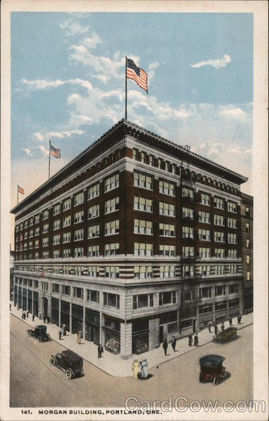 Front: EFE 491 PEDAGOGGETE FL AAAA7 3.3.3 1.7.3 1.77 111 JUH BORBERARE 141. MORGAN BUILDING, PORTLAND, ORE. EPEWIENE Back: CHAS. S. Lipschuetz PORTLAND, OREGON 5. ड्र R-55694 TWO CENTS