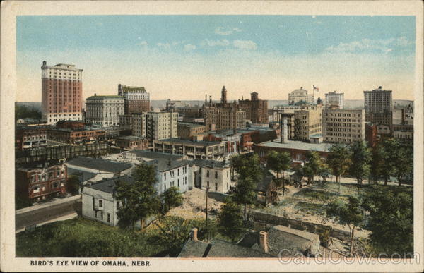 Front: CO BIRD'S EYE VIEW OF OMAHA, NEBR. 8, ORCHARD FUR # Back: MADE IN USA PUBLISHED BY MC LAUGHLIN & BARNHART, OMAHA, NEBR. C. T. R-78223 181 AND ISLAND POSSESSIONS, CUBA, CANADA AND MEXICO FOR FOREIGN