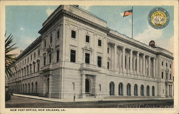 Front: NEW POST OFFICE, NEW ORLEANS, LA. 1795 17 ordere LOKER QUISIANA JUSTICE CHLOR nov SEA Back: C. T. Vis R-31467 TESTIC THIS SPACE FOR ADDRESS ONLY.