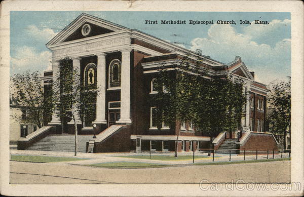 Front: First Methodist Episcopal Church, Iola, Kans. LE 102 3113 Back: E. C. KROPP CO., MILWAUKEE vey Francin 19050 END FEB 12 1030AM 1920 KANS rice tour. Mr. Merion Stoddard ST. 94 Wes New London, Conn.