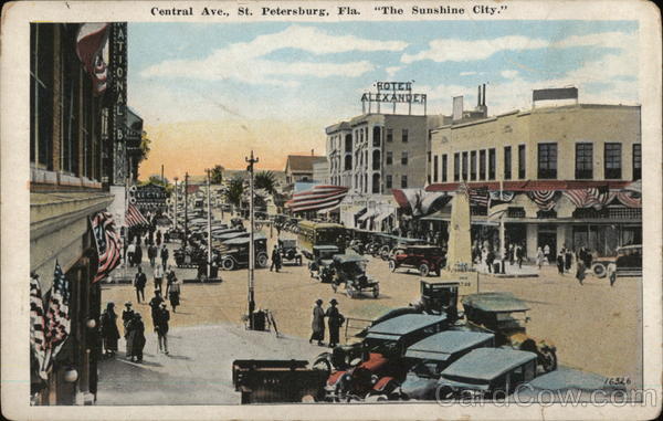 Front: ATIONAL DA Central Ave., St. Petersburg, Fla. "The Sunshine City." ALEXANDER FR 20 20 *** 3799 of= 16326 Back: in or Aq qnd HADE USA IN STAMP HERE