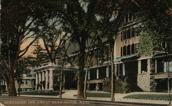 Front: R3 CO BERKSHIRE INN, GREAT BARRINGTON, MASS. Back: 4-783 RINGTON AUG20 8-PM BAR Greated plea on our trip Cieslin. co CHICAGO ja 1915 R-20736 MAS C.T. PHOTOCHROM CARD! U.S.POSIG Mr Louis Moerma Doylestown. Qu