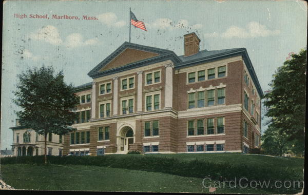 Front: High School, Marlboro, Mass. 17 * * Back: MARL Comment Phelps APRI6 7-15A 19 ORO 13 MASS Pard Leroy Be za 24 APR 12 Man 1913 }