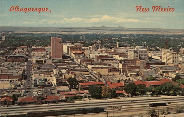 Front: albuquerque, New Mexico ***** Back: ALBUQUERQUE, NEW MEXICO The metropolitan area, looking West from the Santa Fe Train Station. Petley Published by Petley Studios, Albuquerque, New Mexico MARE 82138-B WEST NYACK.