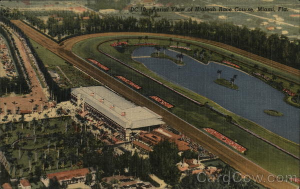 Front: DC.10 Aerial View of Hialeah Race Course, Miami, Fla. IC-H672 Back: GULF STREAM CARD & DISTRIBUTING CO., MIAMI, FLORIDA