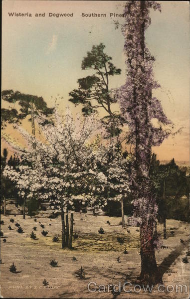 Front: Wisteria and Dogwood Southern Pines PUsi.BY ECEDDY Back: PUBLISHED BY EDDY'S STUDIO, SOUTHERN PINES, N. C. HAND-COLORED