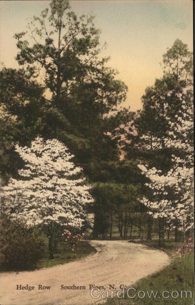 Front: Hedge Row Southern Pines, N. C Back: EBPEC STUDIO SOUTHERN PUBLISHED BY EDDY'S STUDIO HOOG KOMA confpcu 062 SOUTHERN PINES, N. c. RA HAND COLORED Aur