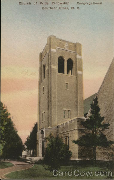 Front: Church of Wide Fellowship Congregational Southern Pines, N. C. Back: PUBLISHED BY E. c. EDDY, SOUTHERN PINES, N. C. 7 HIS SIDE FOR MESSA ยป * HAND-COLORED