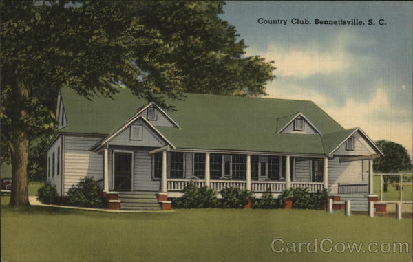 Front: Country Club, Bennettsville, S. C. Back: MADE IN U. S. A "TICHNOR QUALITY VIEWS" REG. U.S. PAT, OFF. MADE ONLY BY TICHNOR BROS., INC., BOSTON, MASS. 71398 PUBLISHED BY SPENCER'S GIFT SHOP, BENNETTSVILLE, SOUTH CAROLINA