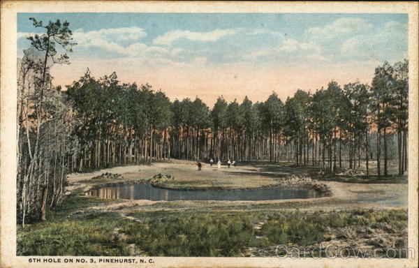Front: 6TH HOLE ON NO. 3, PINEHURST, N. C. Back: R-61442 2.1 cal C.T. AMERICAN PUBLISHED BY E. L. MERROW, PINEHURST, N. C. ART