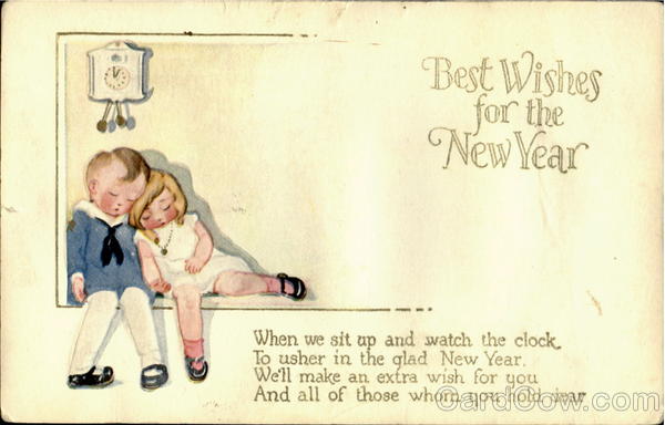 Front: Best Wishes for the New Year When we sit up and watch the clock To usher in the glad New Year. We'll make an extra wish for you And all of those whom you hold dear Back: 364 MADE IN U.S.A .25 ON THIS SIDE HERE
