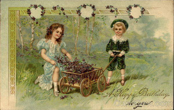 Front: A Happy Birthday to you Back: Love and test wishes from Brother and Sirle Hurtley Mr H. Depler Learned Dover Route 4, Delaware SERIE 11114 Reg.U.S.A.Pat. Orr.