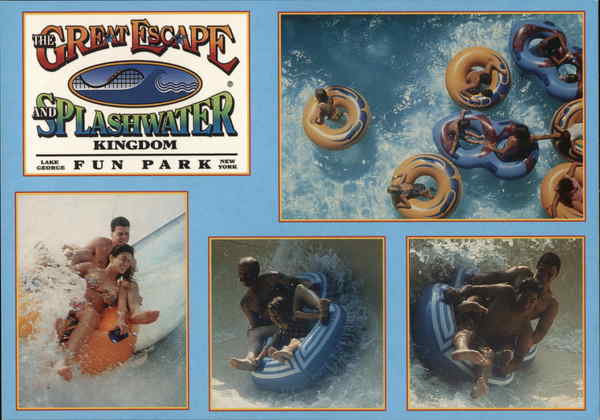 | The Great Escape and The Splashwater Kingdom Splashing good times are had by guests of all ages at the Splashwater Kingdom. Included are pools of fun at Noah's Sprayground, the awesome Black Cobra, the cool Adventure River, the thrilling Banshee Plunge and Twister Falls. |